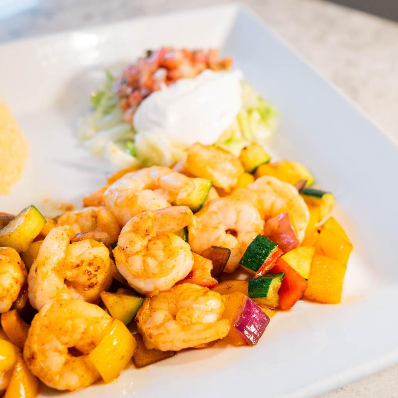 Flour tortilla grilled with cheese, onions, peppers, zucchini, mushrooms, & broccoli. Served with rice, lettuce, sour cream & tomato.