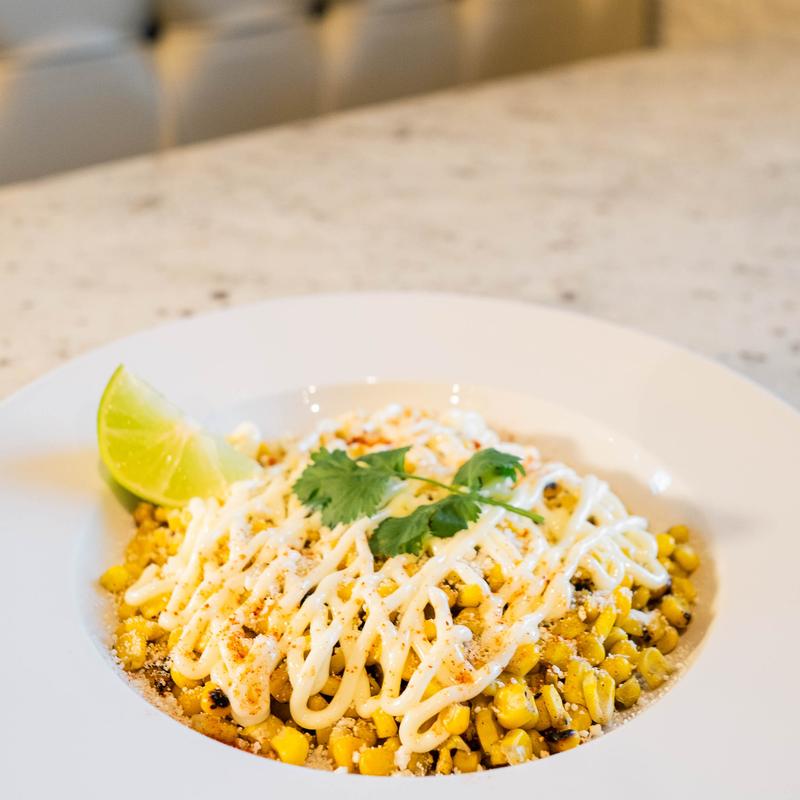 Whole kernel corn in cotija cheese and powder chili. Topped with mayo.